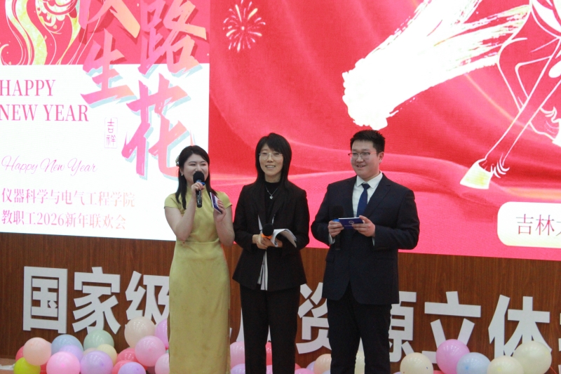 在一片欢声笑语中,新年联欢会拉开序幕。实验教学中心教师代表表演了空灵鼓演奏《中华民谣》,国家工程中心教师代表表演了吉他弹唱《曾经的你》,仪器系教师合唱歌曲串烧《我和我的祖国》《爱你》《我爱你中国》等,电气系教师带来歌曲合唱《年少的你》《强军战歌》和精彩的魔术表演,辅导员、新留校博士后等表演了歌曲合唱《一路生花》和舞蹈《“仪”起跳舞》。