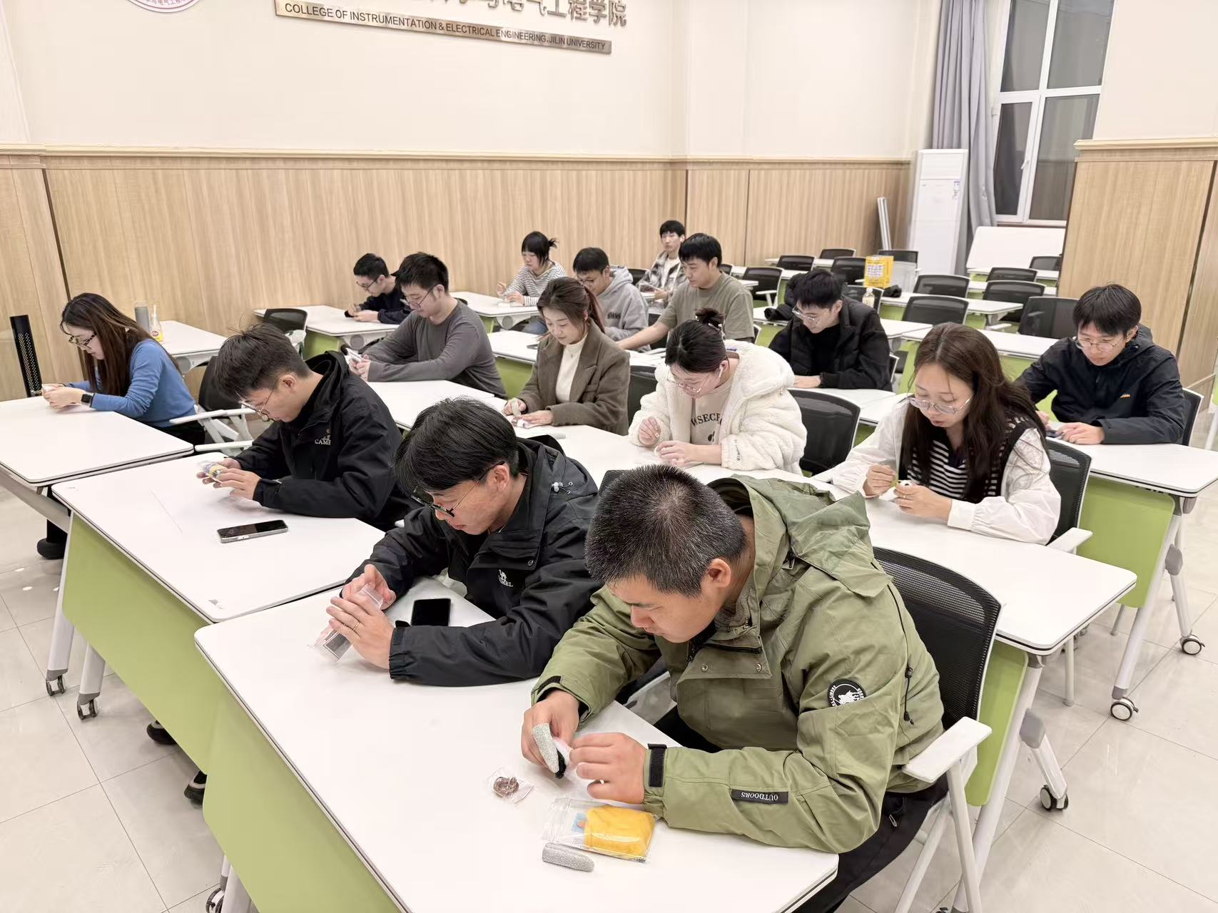 制作过程中,同学们不时交流心得、互相帮助,分享创作灵感和制作技巧。有同学感叹道:“难得有这样慢下来、专注做一件事的机会,感觉特别解压。”也有同学表示:“看着手中的小作品一点点成型,很有成就感,这种专注的状态让人感到很平静。”欢声笑语中,同学们不仅收获了精美的手工作品,更收获了放松的心情和珍贵的友谊。