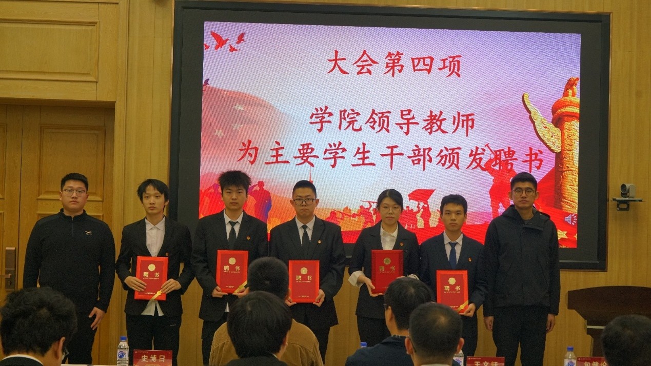 为表彰先进,承续担当,王文轩老师、史博日老师、周琪老师分别为第二十届学生会及第九届研究生会主要学生干部颁发聘书。