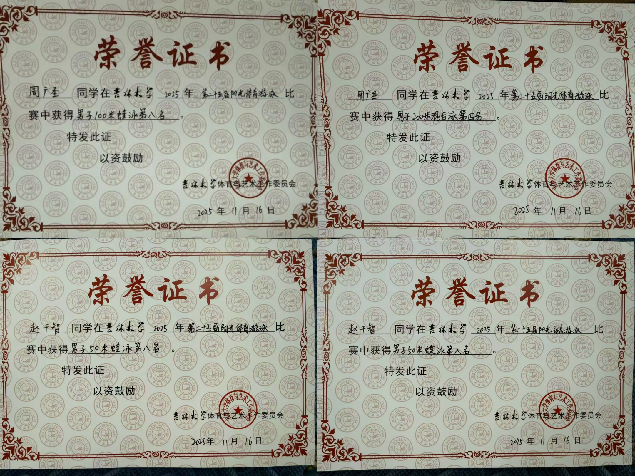 共有3名同学参与,包括选手周广圣、赵千智,以及领队任威涵。尽管参赛规模精简,但充分展现了同学们对游泳运动的热爱与专注投入。